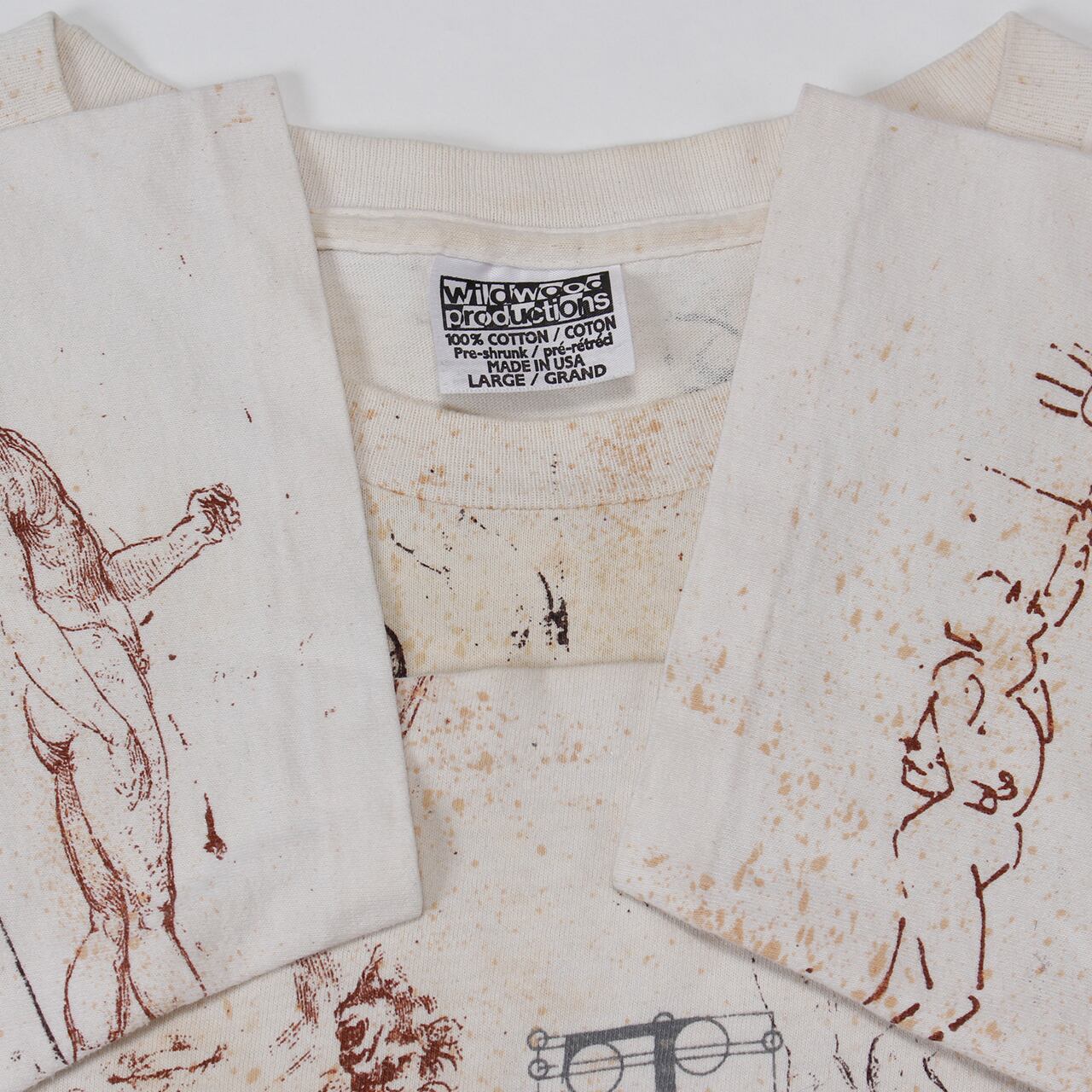 こちらは状態ピンピンの数回ウォッシュのガシガシと着ることが出来るアイテムとなっております。生成り寄りのボディにブラウン・グレーのインクで表現され、プリント・生地共に状態は非常に良好。サイズはフィット系のLサイズですが短丈寄りで、アート好きや古着好きのスタイリングにバッチリハマる一枚となっております。